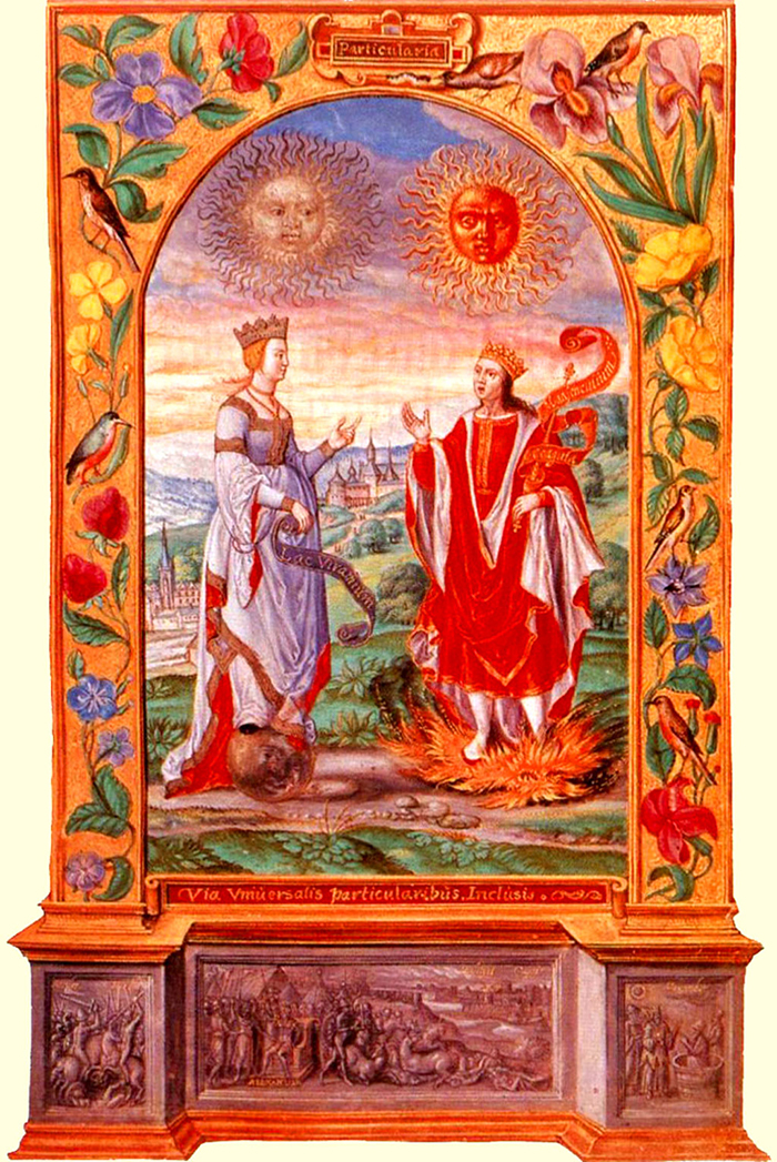 What distinguishes alchemy from purely mystical or “spiritual” paths is above all the loving work, or practice, with substances, matter, materials (particularly with metals), since matter – through all the ways in which it can be refined, perfected, and revitalized -- reflects the inner growth of the laboring alchemist and, in turn, has a retroactive effect on him. This means that by changing matter, or metals, in particular, the alchemist has the power to change him or herself. Why metals? According to alchemical cosmology, the lowest form of matter in the golden chain, or hierarchy, of creation corresponds to the highest form of matter; and even while metals correspond to the lowest level, they also embody the greatest potency and healing power. The prerequisite for this dialectical interplay of substance and spirit lies within the alchemist themself. It relates to their “inner chymic wedding” at the “heart of the heart”, which is the way in which their inner self or spirit affects their work. This is also referred to as the intersection of the cross, whose horizontal axis manifests two contrary poles (male and female, animus and anima), and whose vertical axis is the medium of divine influence on the world. The inner union of the “male and female principle” is thus the sacrifice of one’s own ego to the divine Spirit, the mysterious passage through death, and the transformation of limited consciousness and its preparation for enlightenment. This transformation, if achieved, can also be understood as the marriage of substance and Spirit.